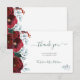Rustic winter chic bridal shower stylish thank you horizontal card featuring burgundy flowers with light grey foliage border and a trendy elegant handwriting dark green typography script.++++++++++++++ Easy to personalize with your text and signature! You can choose to customize it further changing fonts and colours of lettering.