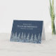 A congratulations on your retirement card with a rustic winter forest covered in snow in navy blue and white. Customizable with your own text.