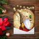 This beautiful Christmas holiday design features a rustic vibe with a gnome standing in the snow in front of a log under lights. Personalize the inside with a custom greeting!