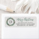 A lush watercolor winter greenery wreath frames a graceful monogram initial on this rustic Christmas return address label. Hand-lettered "merry christmas" script and a soft linen-textured background bring warmth and charm. Personalize with your monogram, family name, and address for holiday card mailings. A timeless finish for every Christmas envelope.
