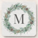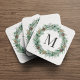 Rustic Winter Greenery Wreath Monogram Coaster