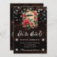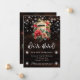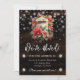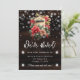 Gorgeous Rustic Watercolor Winter Mailbox with Red Poinsettia and berries on a dark brown wood background with snowflakes overlay and diamonds