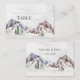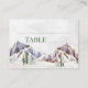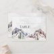 Winter wedding table place setting cards with a rustic snow covered mountain scene.