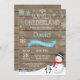 Rustic Winter Onederland 1st Birthday Invitation. Snowman and Penguin. Blue and White Snowflake. First Birthday. Boy 1st Bday Invite. Rustic Wood Background. Black and White. For further customization, please click the "Customize it" button and use our design tool to modify this template.