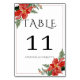 Rustic Winter Poinsettia Red Christmas Wedding Table Number
