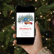 This stylish holidays design features a rustic red truck carrying a Christmas tree with a blue barn and trees covered in snow, with a welcoming snowman. Below edit the details to reflect your Christmas Eve Party Invitation information. On the invitations reverse is a rustic pattern of white reindeer on a brown background.