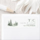 Beautiful winter watercolors in shades from soft sage to dark forest green, flowing handwritten script text and elegant design layouts provide the basis for this exciting wedding suite. The coordinating address label shown here with striking winter fir trees on a white background, provides a template to easily add your initials, names and return address. Search ID1049 to see other pieces and colour choices for this set.