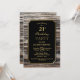 A rustic gold bordered wood 21st birthday party invitation with gold text on a black background.