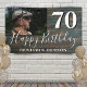 Rustic Wood 70th Birthday Party Photo Banner. Great sign for the 70th birthday party with a custom photo and text in trendy white script with a name. The background is dark wood texture. Personalize the sign with your photo, your name and the age number.