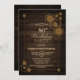 Rustic woodgrain 80th birthday party invitation with a unique geometric gold frame.