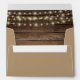 Rustic weathered wood planks and string lights accent this inside of this envelope with your return address on the back flap.