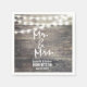 Rustic wood and string lights wedding napkins. Custom vintage grey wood background decorated with string of lights. Perfect wedding invite for wedding with night lights wedding theme, barn theme, garden theme, outdoor wedding with twinkle lights.