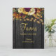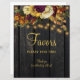 Fall floral botanicals and rusty orange pumpkin over a dark barn wood with string lights wedding or bridal shower favour sign.