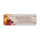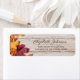 The autumn-inspired address label features a light wood background with fall leaves on the side.