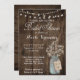 This is a beautiful custom wedding invitation for the bridal shower. It features string lights with a wood background. It's a rustic theme that's perfect for your barn wedding. Also featured is a mason jar with a tag for the couple's initials. I can change the invitation in any way you need. Feel free to contact me at ginag0108@hotmail.com. You can visit my store for more designs as well: www.zazzle.com/my_wedding_bliss.