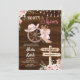rustic wood background floral boots and bows invitation
