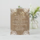 Rustic barn wood elegant string lights and lace wedding insert with directions, reception details, accommodations and other information for guests