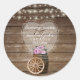 Rustic Wood Barrel Wedding with Pink Flowers Classic Round Sticker