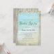 Beautiful aqua blue ocean waves crash against the beach in this rustic beach bridal shower invitation design. String lights decorate the top, and the important details are framed with weathered wood.