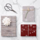 Rustic Wood Beige Red Snowflake Pattern Christmas Wrapping Paper Sheet