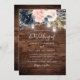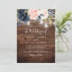Rustic Wood Blush Navy Floral Lights Wedding Invitation
