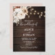 Introducing our enchanting Rustic Wedding Invitation, the perfect choice for your fall wedding celebration. The design features a beautifully illustrated rustic wood backdrop, evoking the charm and warmth of an autumnal setting. At the top of the card, a stunning watercolor boho arrangement of flowers in soothing neutral colours is gracefully presented, illuminated by the gentle glow of string lights, adding a touch of magic and romance. The invitation elegantly combines text in a classic serif font with a modern script, highlighting the heading "The Wedding of" in a captivating script font. This invitation is an ideal selection for couples looking to capture the essence of a fall wedding, merging rustic allure with modern sophistication. Set the stage for your special day with an invitation that not only announces your event but also reflects the beauty and unique spirit of your love story.