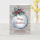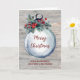 Merry Christmas for brother and his family card with rustic watercolor christmas ornament and holly berries and vintage wood pattern.