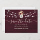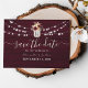 Rustic Wood Burgundy Floral Lights Wedding Save The Date