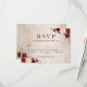 Rustic Wood Burgundy Red Floral Wedding RSVP Card