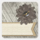 Rustic Wood Button Fabric Flower & Shabby Burlap Square Sticker