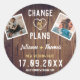 Rustic Wood Custom Photo Elegant Change of Plans Classic Round Sticker so your precious guests can stamp it easily on their calendars and planners and do not forget about your new wedding date