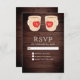Elegant RSVP card featuring beautiful monogram coffee mugs with modern typography against a barn wood background.