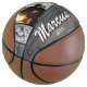 Rustic Wood Dad Name Keepsake 3 Photo Collage Basketball. Dark wood background. Add your photos, name and year. You can change any text on the basketball. This custom and personalized basketball is a perfect gift and a keepsake for a dad or a new dad on Father`s Day, birthday or Christmas.