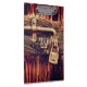 Rustic, dark stained wood door embellished with an antique, brass lock and bolt. Rustic, richly coloured and handsome. Personalize if you wish.