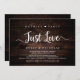 Beautiful Nothing Fancy Just Love party, Wedding Elopement Announcement / Invitation card, in Modern Rustic Brown Dark wood design. This is perfect for your wedding reception and post-wedding celebration party. Add your details in matching font / lettering.