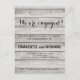We are engaged party invitation postcard featuring a white wood background. More options on: http://www.zazzle.com/designbyredline or contac us for matching items