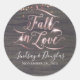 Rustic Wood Fall in Love Rose Gold Wedding Classic Round Sticker