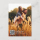 Rustic Grey Wood, String Lights, Gold Sparkles & Fall Leaves QR Code & Photo Wedding Details Card.