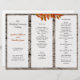 Rustic wood, tree bark, fall leaves wedding program to fold into thirds. Quality letterhead paper with red leafy branches and wood background. Use templates in three areas to customize your own ceremony program. Fold after purchase.