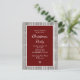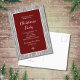 Rustic Christmas Party invitation postcard, with a wood image and a deep red background. With white typography, you can customize this invite with your own text. Perfect for your festive holiday event!