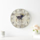 Rustic white washed barn wood walking moose family name large clock for your cabin, lake house, tiny house or any rustic woodlands, wilderness, or country setting. The stylish script and serif typeface contrasts gives this design a contemporary rustic vibe.