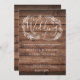 A rustic wedding invitation featuring a delicate hand-drawn rustic floral garland of botanical leaf foliage with stylish script typography, on a rustic wood background. Personalize with your special wedding day information. Designed by Thisisnotme©