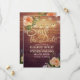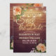Save The Date Wedding Invitation Card Templates - Faux Gold Foil Script with Peach White Roses Floral and String Lights on Rustic Wood Background.