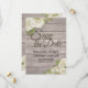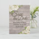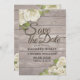 Save The Date Wedding Invitation Card Templates - White Roses Floral and String Lights on Rustic Wood Background.