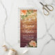Wedding Program Rack Cards Templates - Elegant Script with Peach White Roses Floral and String Lights on Rustic Wood Background.
