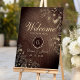 Welcome guests to your vintage country wedding with our elegant rustic wood welcome poster. Adorned with intricate gilded boho gold floral lace and personalized with the monogram of the bride and groom, it sets the tone for a charming celebration amidst nature's beauty.
