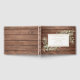 A rustic personalized celebration of life, funeral guest book featuring greenery on a wood panels background. Designed by Thisisnotme©