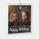 Rustic Wood Holiday Script Custom Family Photo Ceramic Ornament