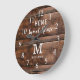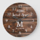 Rustic Wood Home Sweet Home Monogram Family Name Large Clock