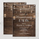 Set the perfect tone for your new home celebration with this charming and understated rustic mason jar housewarming party invitation. Glowing mason jar lanterns hang delicately from twinkling string lights across a rich, warm weathered wood plank background — creating a cozy, intimate atmosphere with effortless country charm. This clean, floral-free design puts the focus entirely on the rustic string light aesthetic, making it a versatile choice for any season and ideal for those who prefer a simpler, more minimalist farmhouse style. The elegant script and bold lettering add a refined touch to this beautifully balanced design. Fully customizable with your names, date, time, address, and RSVP details. Perfect for couples who love classic rustic style without the fuss.
